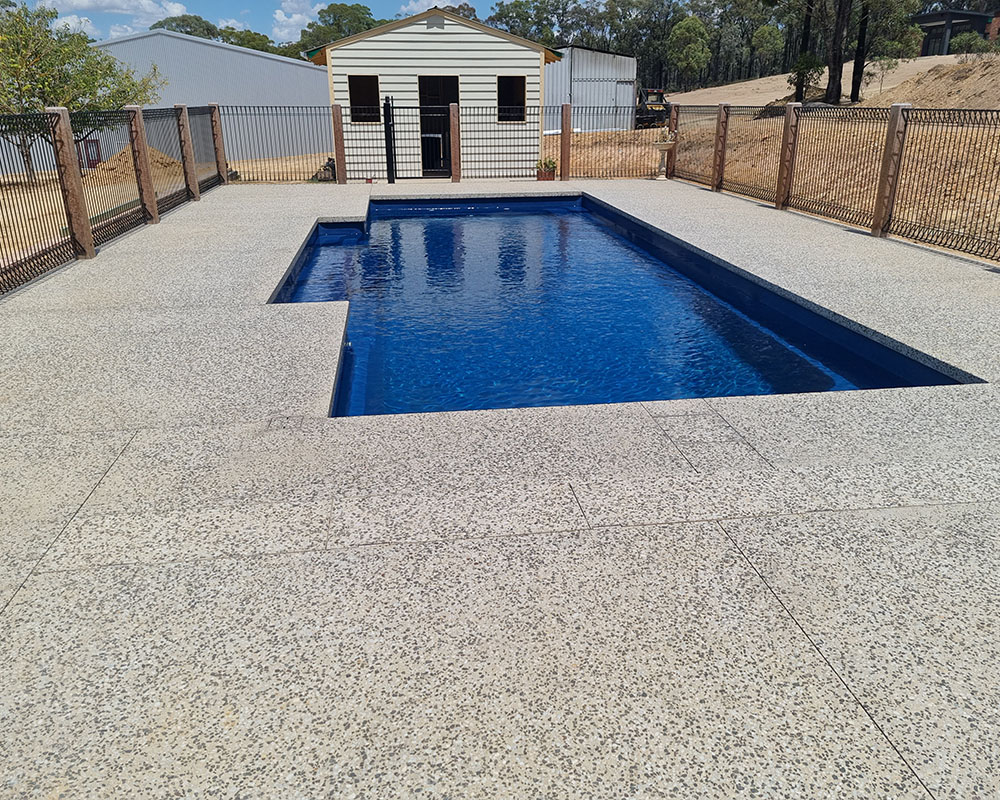 TJL Concreting creates beautiful, slip-resistant pool surrounds that blend safety and style. Choose from polished or exposed aggregate finishes for a functional and attractive pool area. Our surrounds are crafted for durability and designed to enhance the aesthetic appeal of your outdoor living space.